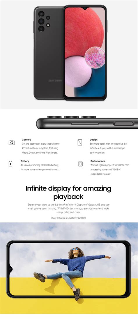15 rows samsung galaxy a13 and a23 unveiled with 6.6 fhd+ displays and 50mp cameras 04 mar 2022; This phone is available in colors black, white, peach, blue. Its resolution is 1080 x 2408 pixels and 400 ppi density. Description get the features you love without the high price tag. 15 rows samsung galaxy a13 android smartphone.
